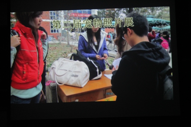 活动现场气氛十分活跃。选手们上台讲述与鱼虫之间的亲密、有趣的故事,既展示了自己与宠物之间的友爱之情,又带动了现场的气氛。此次比赛最吸引人的要数国钰彬与他的宠物——一只叫金莲的猫咪,国钰彬同学凭借优质的照片和生动有趣的演讲最终摘得此次活动的桂冠。