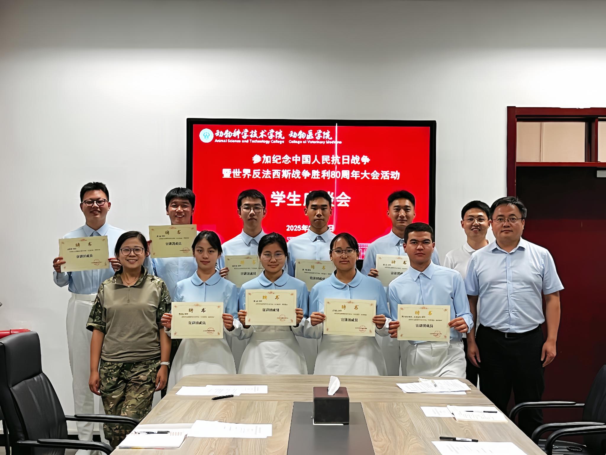 参加纪念中国人民抗日战争暨世界反法西斯战争胜利80周年大会广场合唱团的北农动科青年学子代表于9月11日下午在动科楼305举行座谈交流会。学院党委书记党登峰,党委副书记、学生工作副院长苑婧娴,团委工作负责人凡震及广场合唱团成员李欢乐、杨捷、陈诺、王珂悦、房子豪、孙一炜、阿卜杜开赛尔·艾尼瓦尔、杨锦一同参会。师生共同回顾纪念大会盛况,分享感悟经历,共话使命担当。