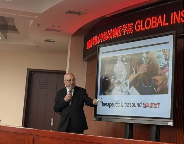 在随后的问答环节中,与会师生积极提问。Dr. Memon就整合医学在临床中的具体应用、中西兽医理论的融合路径等专业问题进行了细致解答,并结合教学案例,生动展示了整合疗法在促进动物康复方面的显著成效。现场交流热烈,学术氛围浓厚。