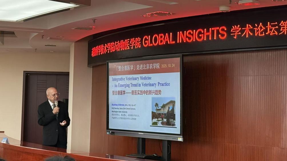 2025年10月24日下午,动物科学技术学院/动物医学院成功举办第十二期“Global Insights”学术论坛。本次论坛特邀国际整合兽医学领域的领军人物、华盛顿州立大学名誉教授Dr. Mushtaq Memon作为主讲嘉宾,为师生带来了一场富有启发性的学术报告。论坛由学院动物医学系刘雪威副教授主持。