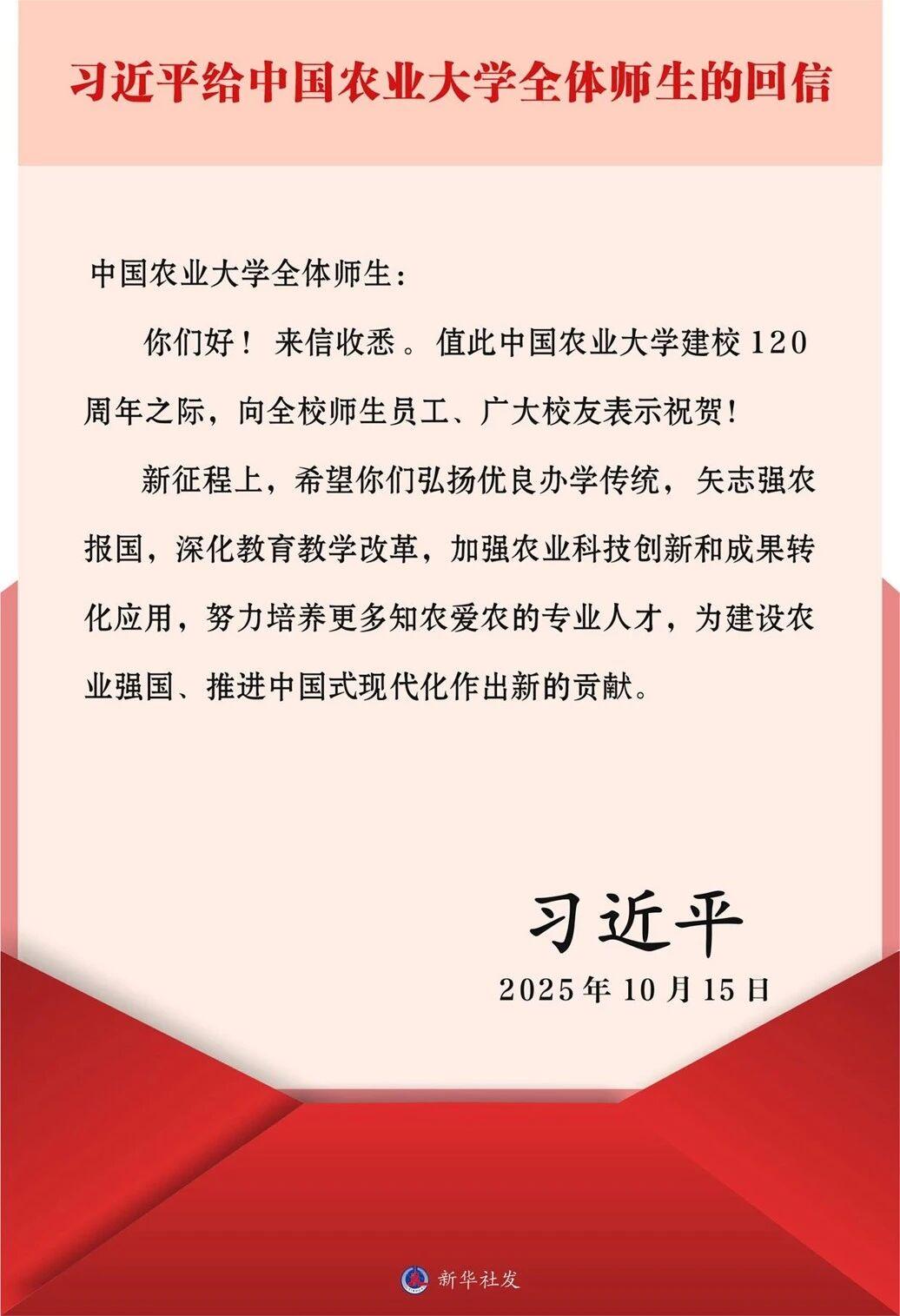 在中国农业大学建校120周年之际,习近平总书记给中国农业大学全体师生回信,激励了广大学子和教育、农业工作者矢志强农报国。