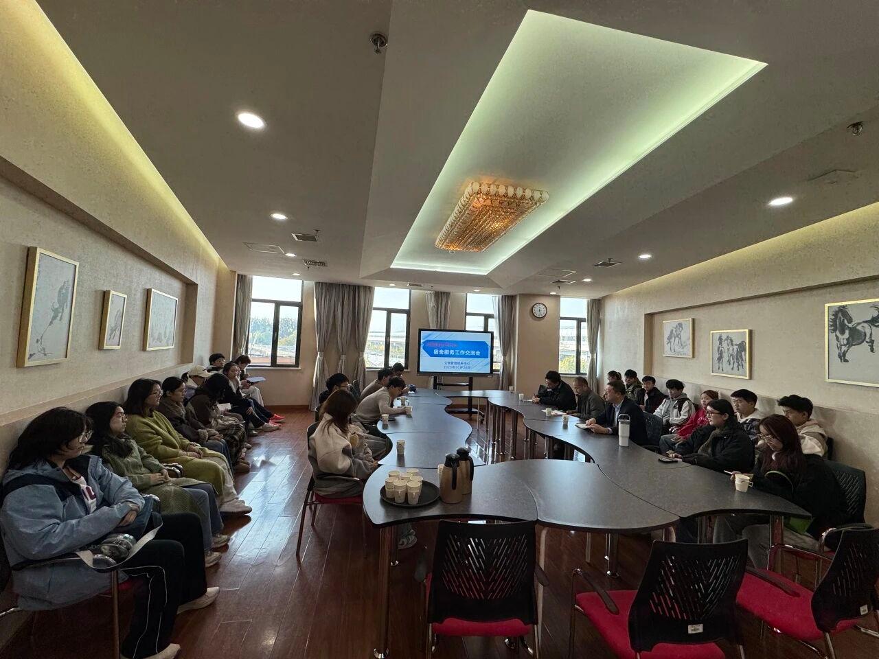 10月28日,为提升学生公寓服务质量,解决学生宿舍生活中的切实问题,公寓管理服务中心与动物科学技术学院联合举办后勤服务面对面活动,公寓中心主任李俊升、副主任吕大鹏、动科学院25级本科生辅导员褚思南,以及动科学院各年级本硕学生参加本次交流会。
