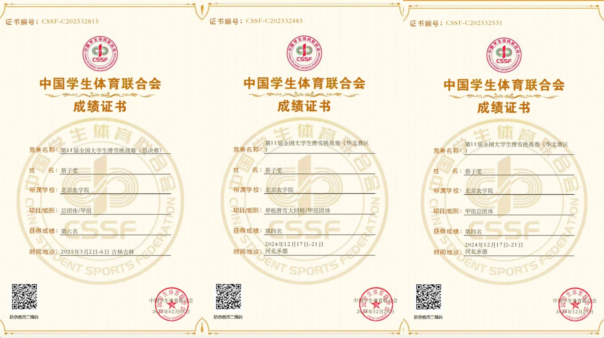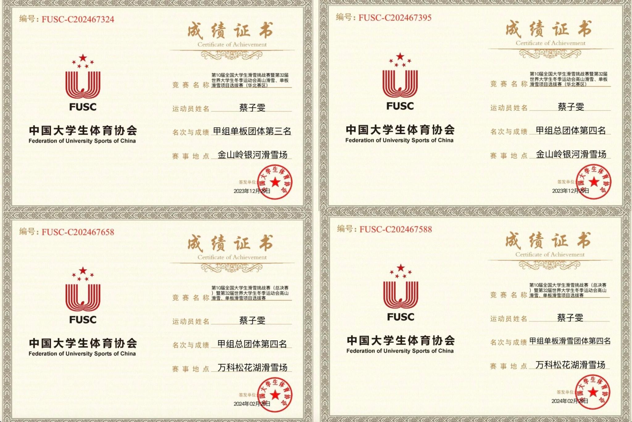 2.第11届全国大学生滑雪挑战赛总决赛总团体第六名