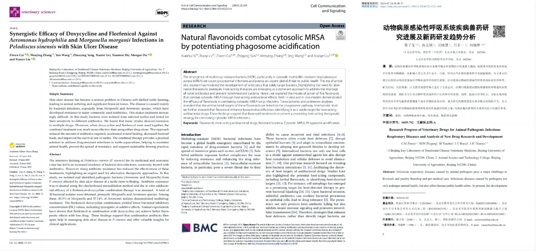 [2] Cai Z, Zhang W, Wang Y, Yang Z, Lei X, Shi X, Du M, Liu X. Synergistic Efficacy of Doxycycline and Florfenicol Against Aeromonas hydrophilia and Morganella morganii Infections in Pelodiscus sinensis with Skin Ulcer Disease.VetSci.2025Jun23;12(7):611.doi:10.3390/vetsci12070611.