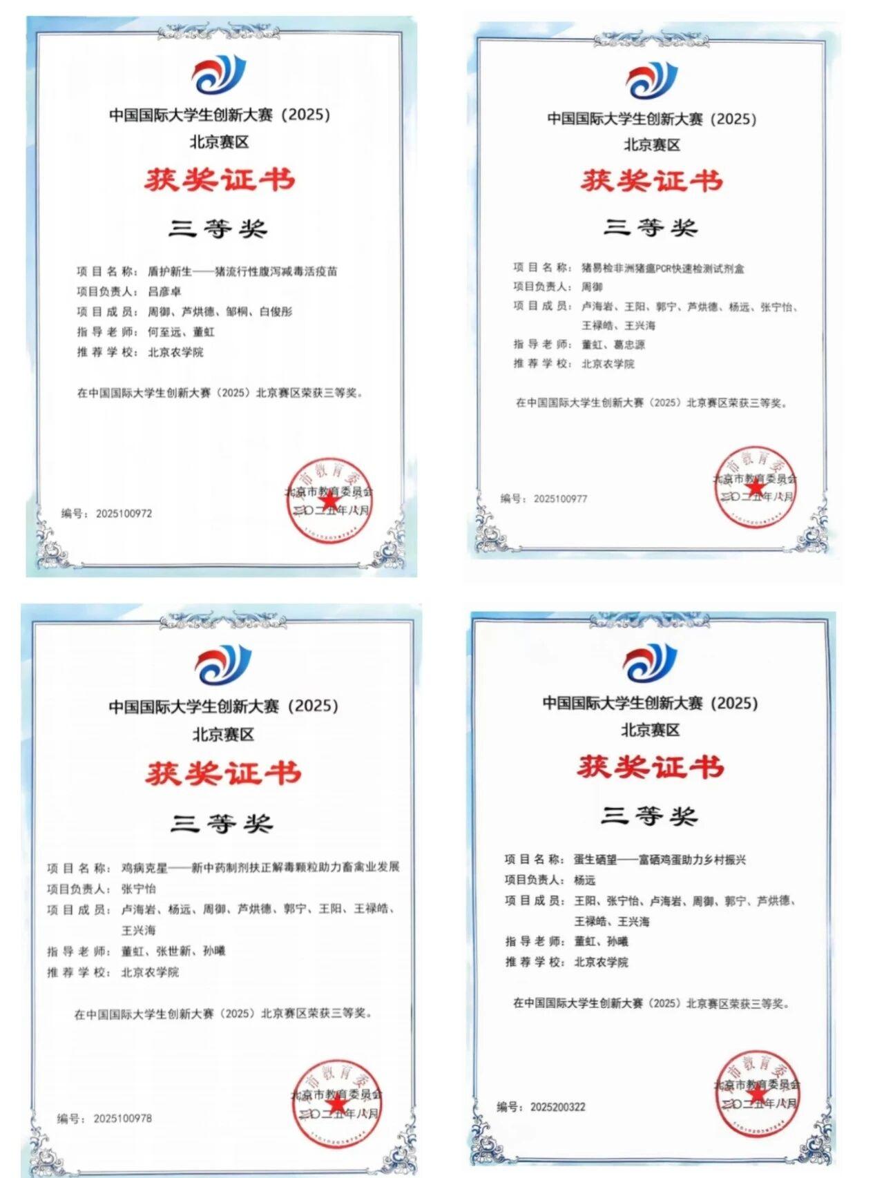 8.中国国际大学生创新大赛(2025)北京赛区三等奖(盾护新生-猪流行性腹泻减毒活疫苗)