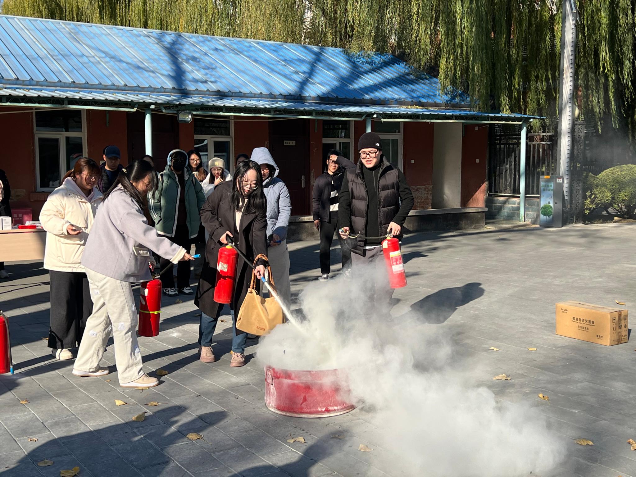 安稳处为同学们提供了干粉灭火器和投掷型液体灭火瓶,同学们积极参与灭火实操练习。一名同学表示:“之前只在视频里看过灭火器操作,这次亲手实践,真正掌握了使用方法,受益匪浅。”