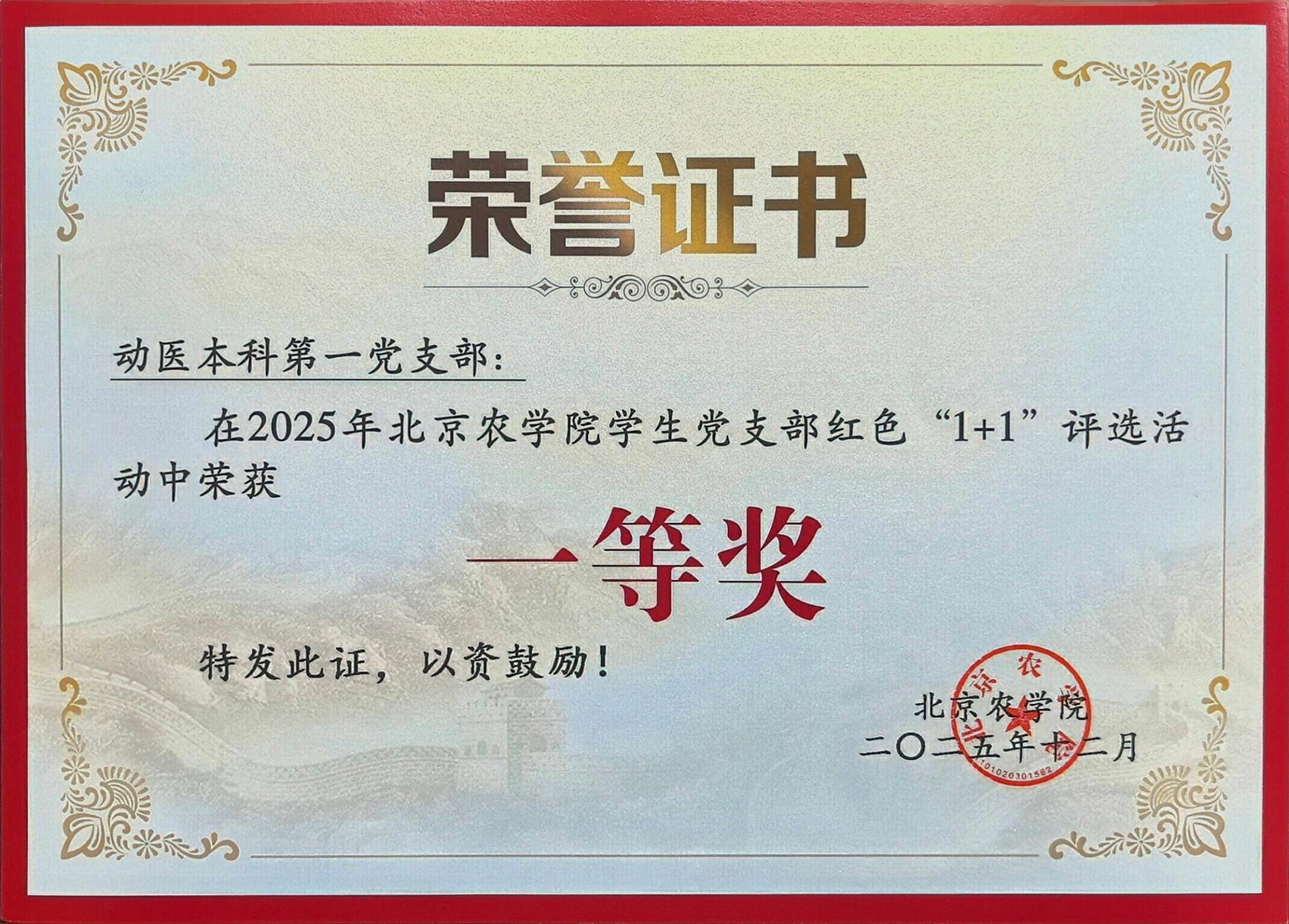 近日,北京农学院2025年学生基层组织“家”年华交流展示活动校内评审结果公布,动物科学技术学院动医系本科生第一党支部获学生党支部红色“1+1”一等奖,23动科1班获优秀基层组织(班集体)一等奖。