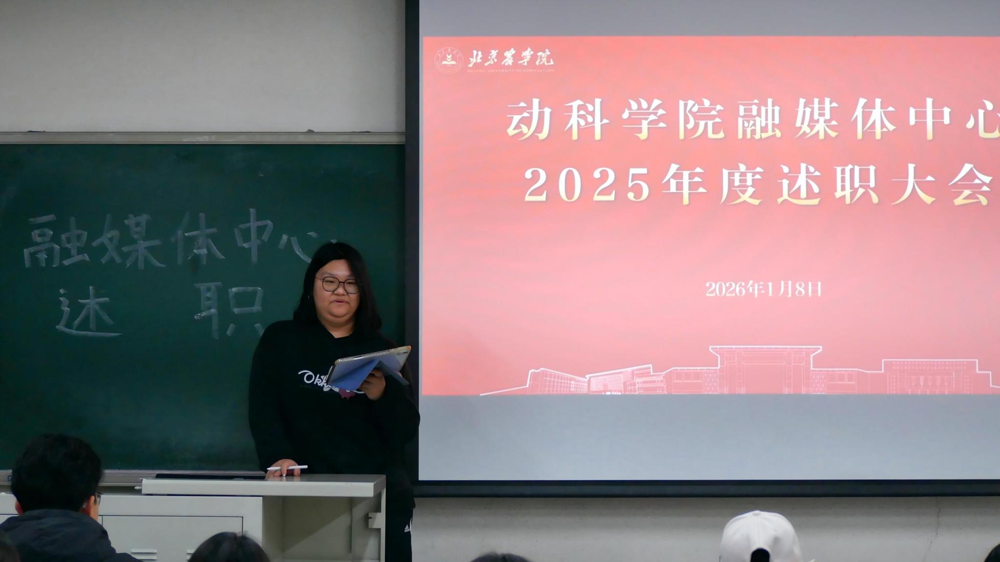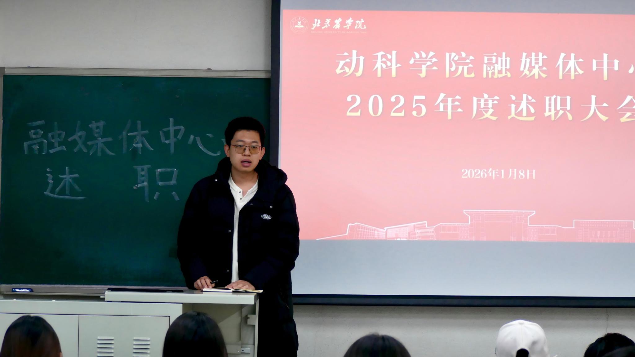 为全面总结工作成果,提升宣传思想工作水平,动科学院融媒体中心近日召开2025-2026学年述职评议会。学院宣传工作负责人、辅导员褚思南主持会议,融媒体中心全体成员参加会议。