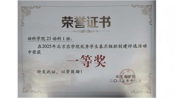 2025年北京农学院优秀学生基层组织创建评选一等奖-动科学院23动科1班